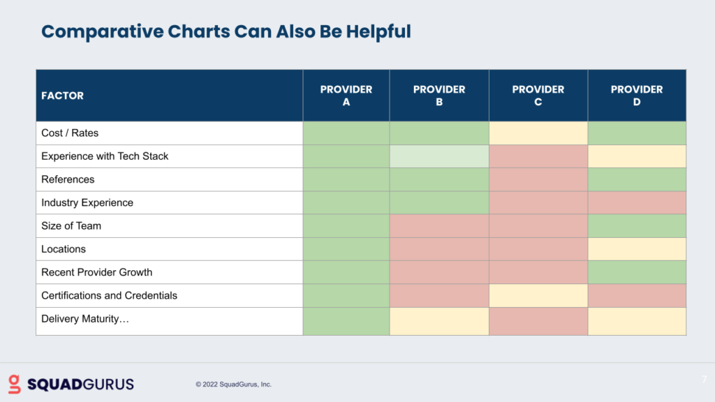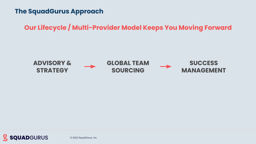 You shouldn’t go with somebody just because they were referred to you. That’s the number one mistake that we see. It’s an unforced error because the market’s so big, it’s just so daunting. And without somebody like SquadGurus, you don’t really have a guide to help you through that process. Where we’ve done the research, we don’t know every provider that’s out there, but we have pretty wide-ranging knowledge of providers and we can bring new providers into our network very quickly, evaluate them and stand them up. If there’s some specific need, we can find a proper one.