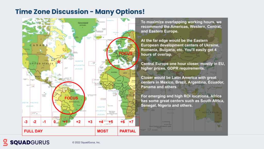 What else helps with selecting the right software services provider? One of the things that’s really important is time zone, and we get this question a lot like:
